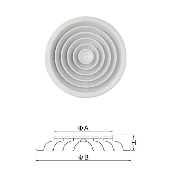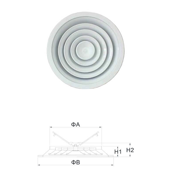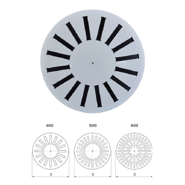 Round Diffusers: Round diffusers are circular in shape and are popular for their aesthetic appeal. They are commonly used in residential and commercial settings and come in various sizes to accommodate different airflow requirements.