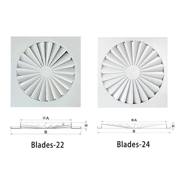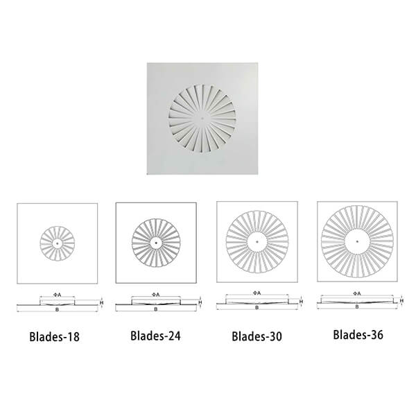 Airflow Pattern: The design of the diffuser, including the arrangement of blades or vanes, determines the airflow pattern it creates. Some diffusers produce a radial or swirl pattern, while others provide a more linear or directional airflow.